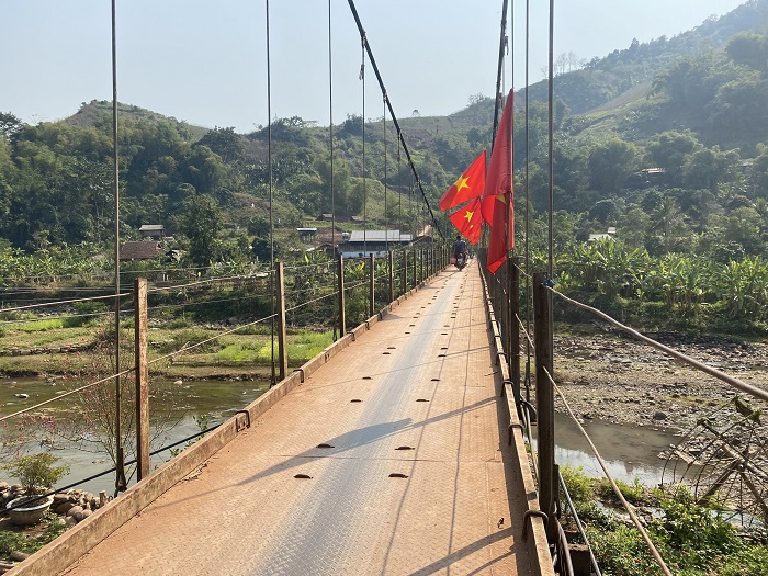 (Ảnh: Cây cầu dẫn vào bản dân tộc Nà Sự)