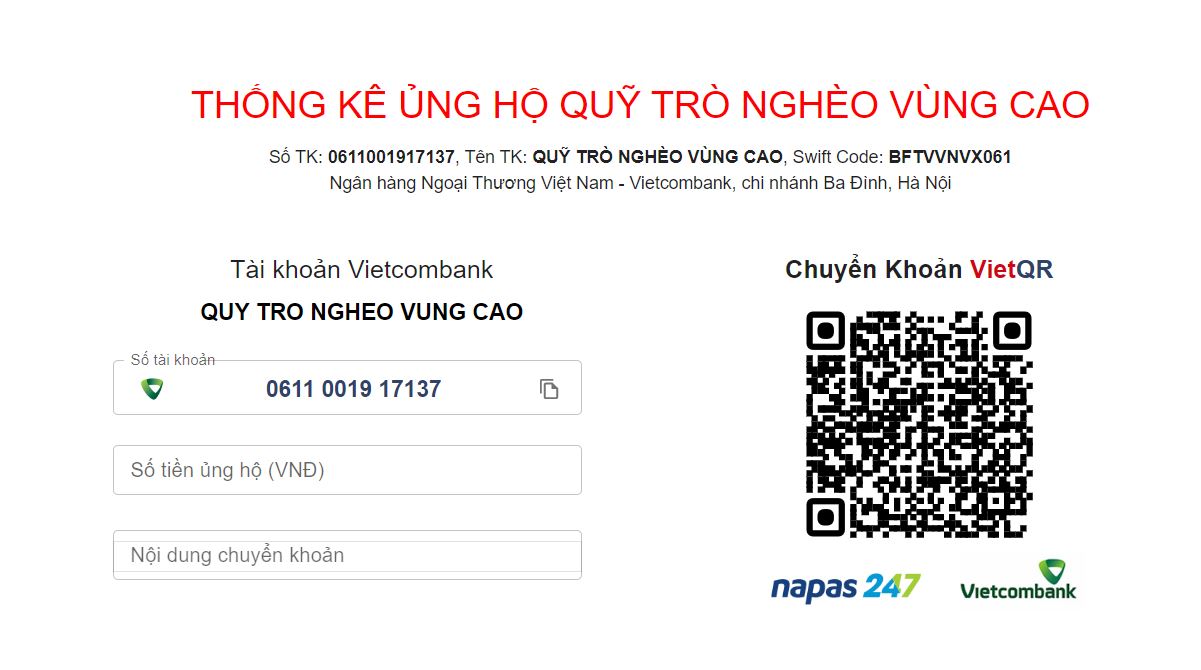 Thông tin tài khoản: Quỹ Trò Nghèo Vùng Cao.